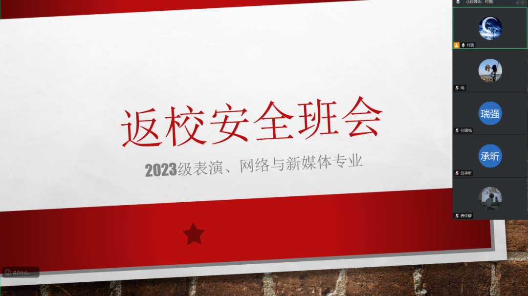 为切实做好新学期学生返校工作,保障学生平安、有序开启校园生活,传媒学院于2月20日—25日组织召开了以“安全返校,护航新学期”为主题的春季开学学生返校安全教育线上班会。