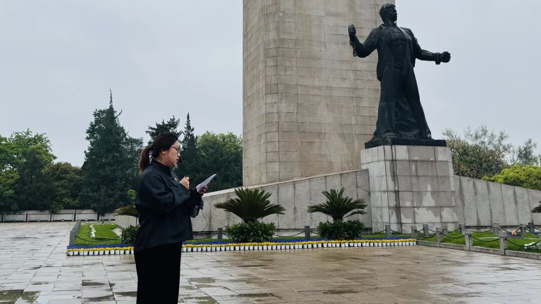 院长助理吴素花在活动中发表讲话。她指出,雨花台是革命先烈用鲜血铸就的英雄热土,更是青年学子汲取红色力量、淬炼精神信仰的鲜活课堂。作为传媒专业学子,手中的镜头是讲好中国故事、传递红色精神的重要载体。她勉励同学们,以此次研学为契机,铭记革命历史、珍惜当下生活,将英烈精神内化于心、外化于行,在研学实践中锤炼专业技能,把个人理想追求融入国家发展大局,以专业所长传承红色基因、弘扬革命精神。
