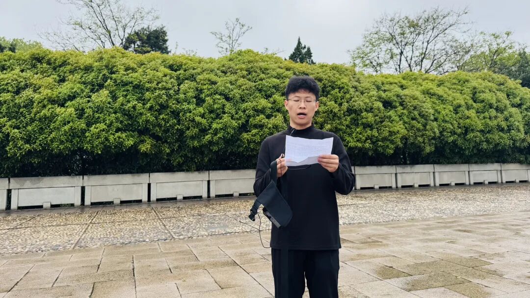 2023级摄影专业学生王孟涛作为学生代表发言。他满怀敬意,向英勇献身的革命先烈致以深切哀思与崇高敬意,并表示,新时代青年必将铭记革命历史、传承红色血脉,在今后的学习与生活中坚定理想信念、勇于拼搏奋进,以实际行动践行青年使命,不负先辈嘱托,不负时代、不负韶华。